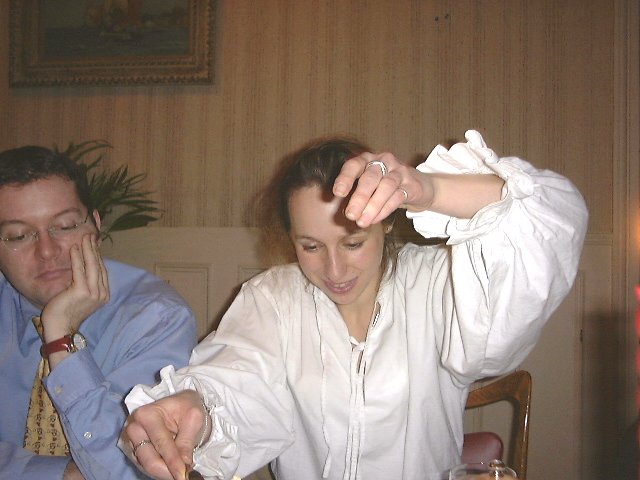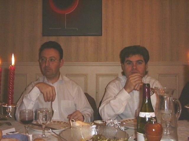 Au menu Aspic de crevettes[Daube de sanglier] Plateau de fromages et sa saladeCrêpes SuzetteChampagne, café, liqueurs, cigarillos